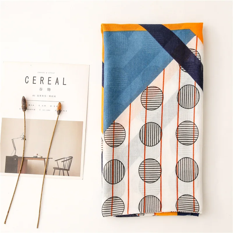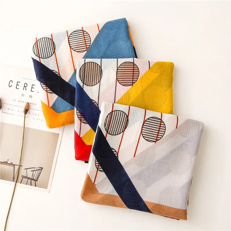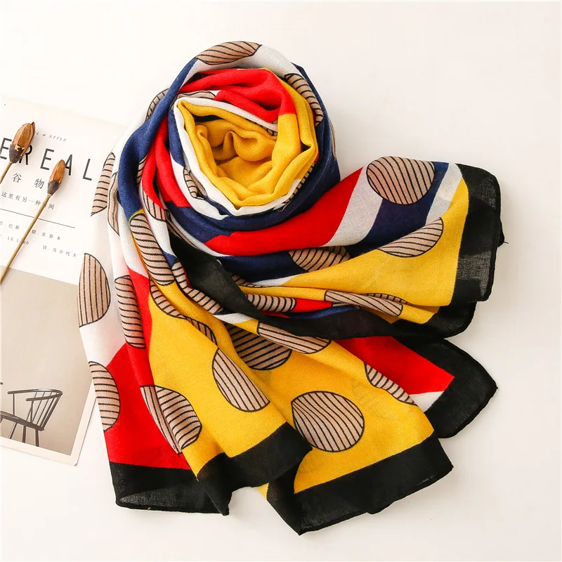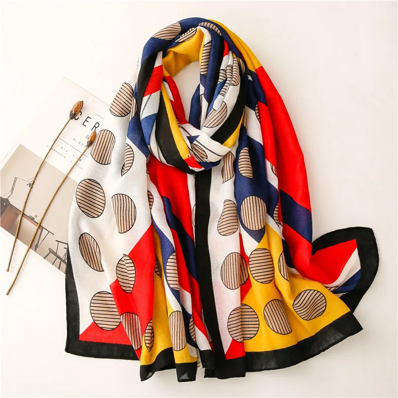 Luxury ladies scarf 2021 new autumn length cotton scarf wholesale Seven striped color dots fashion sunscreen shawl scarf scarf