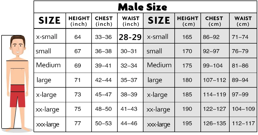 Male XS: Bust(86-92cm) Waist(71-74cm) Height(165cm)
