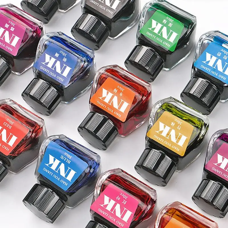 30 мл бутилированное стекло гладкая авторучка чернила пополнения канцелярские принадлежности для школьников, студентов канцелярские принадлежности 16 цветов