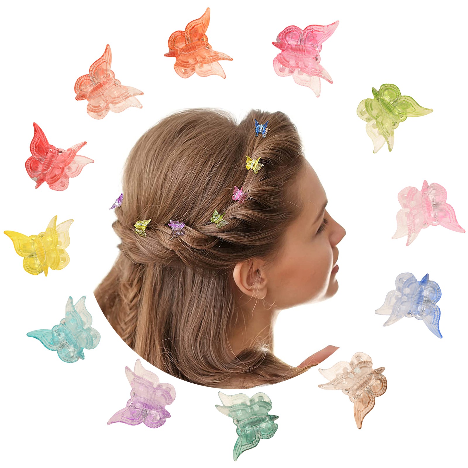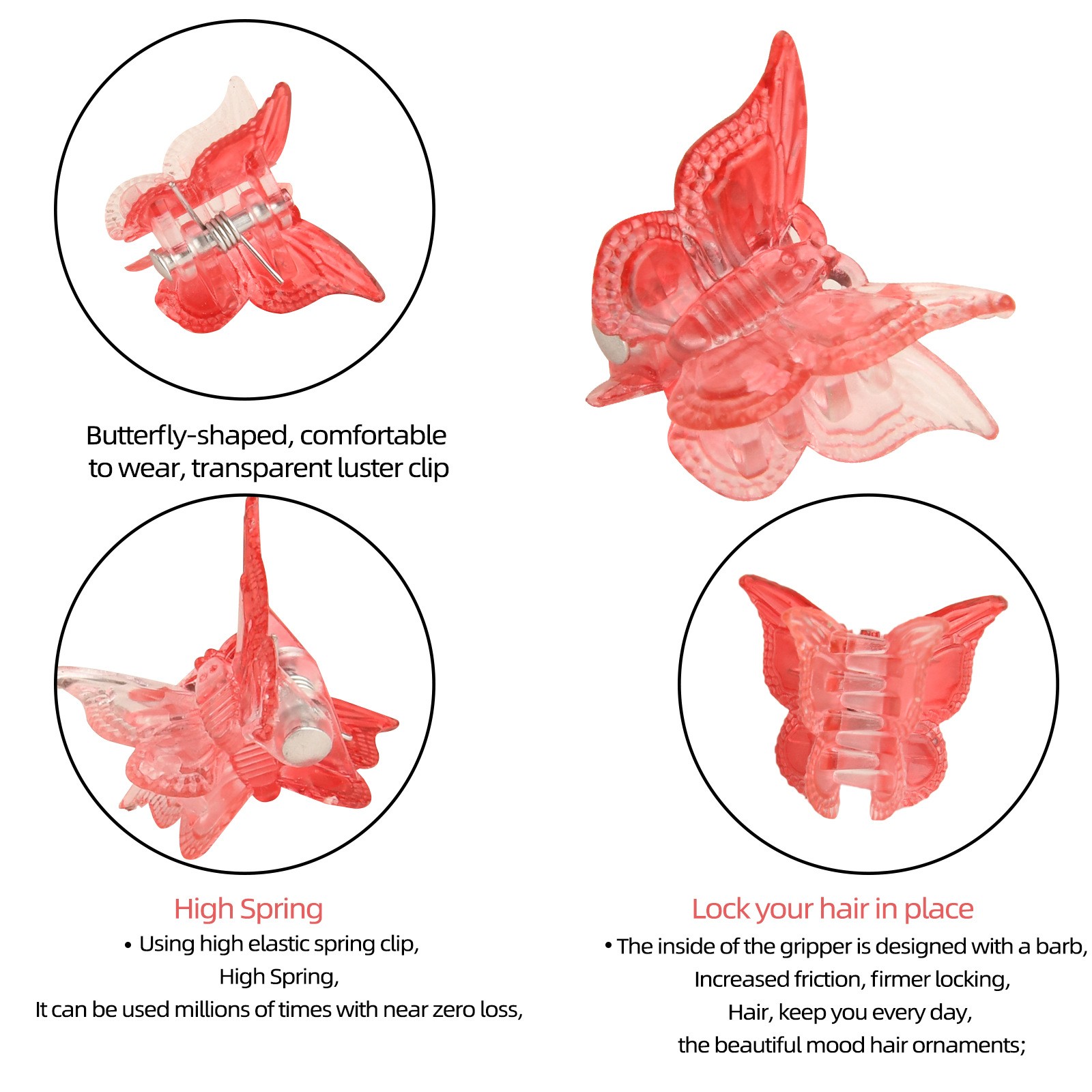 1.MATERIAL: These butterfly hair clips made of premium plastic and metal, feature durable, rust resistance, not easy to damage or faded. These mini hair clips can satisfy your daily needs.