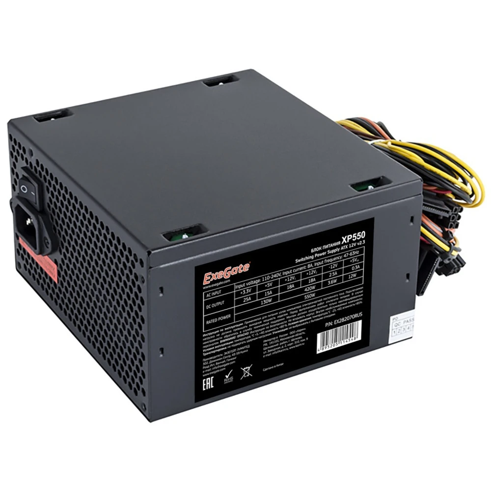Мощность 550 Вт. Тип ATX 12V v.2.3. Разъемы 20+4 pin ATX (4-pin могут отстегиваться), 1 х 4 pin CPU, 3 х SATA, 2 х Molex, 1 х Floppy, 1 х 6+2 pin PCI-E. Многоуровневая защита SCP/OVP/UVP/OCP/OPP/OLP/OTP. Вентилятор 120 х120 мм. Размеры 150х86х140 мм.