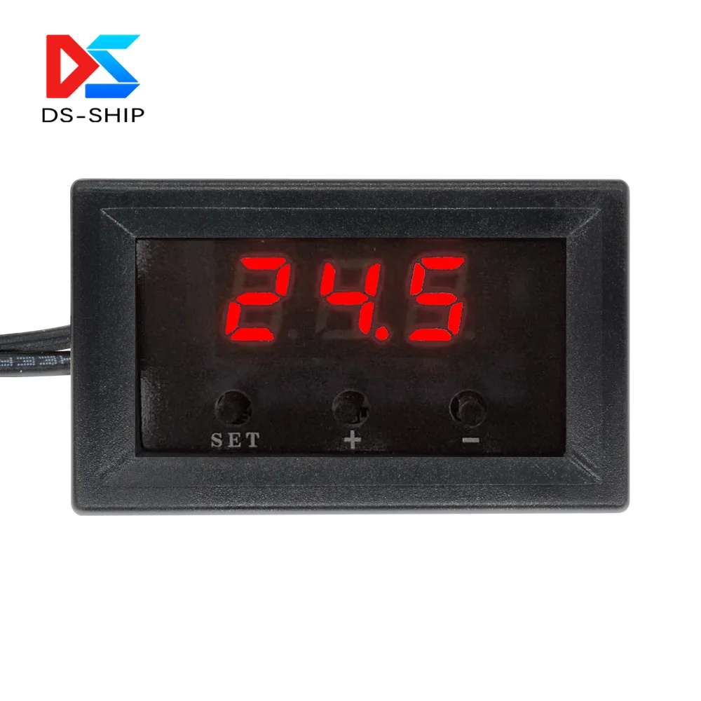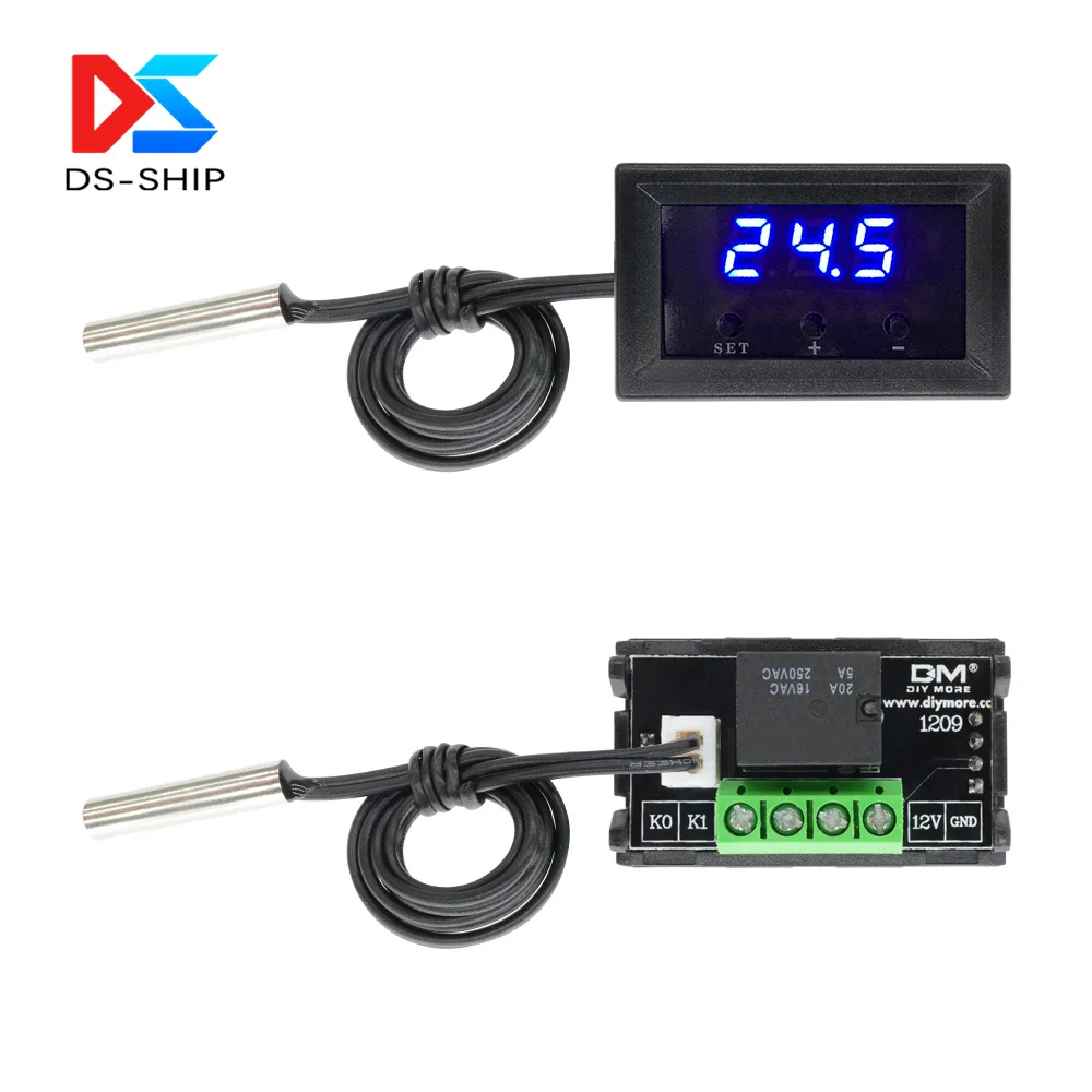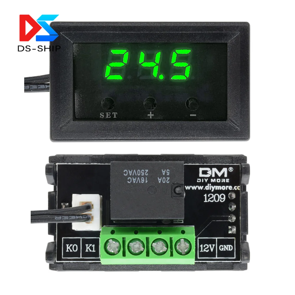W1209 термостат с инструкциями по корпусу Особенности продуктаПолная заплата машина, волновая пайка, стабильная работа, хорошая консистенцияС корпусом, более красивым и практичнымВстроенный чип центрального процессора (MCU), умнее, низкое энергопотреблениеАвтоматическое отключение памяти (встроенный блок памяти MCU EEPROM)Управление точность 0,1 градусов по ЦельсиюНабор задней части 0,1, может контролировать десятичный (0,1-15,0) Технические параметры:Диапазон контроля температуры: -50 ~ 110 °CРазрешение:-9,9 ~ 99,9, когда 0,1 ° C другой диапазон температур 1 °CТочность измерения температуры: 0,1 °CТочность управления: 0,1 °CТочность гистерезиса: 0,1 °CЧастота обновления: 0,5 SТип дисплея: 0,28 дюймов три цифровых трубкиВходная мощность: 12 В постоянного токаВход измерения: NTC (10K 0.5%) длина водонепроницаемого датчика 300 ммВыход: 1 релейный выход, 5A 250VAC, 20A 16VACЭкологические требования: -10 ~ 60 °C влажность 20%-85%Размер: 47,5*18,5*31,5 ммПотребляемая мощность всей машины: Ток покоя: ≤ 10 мА ток тяги: ≤ 65ма Посылка:1 шт. * W1209 светодиодный цифровой регулятор температуры1 шт. * кабель зонда NTC