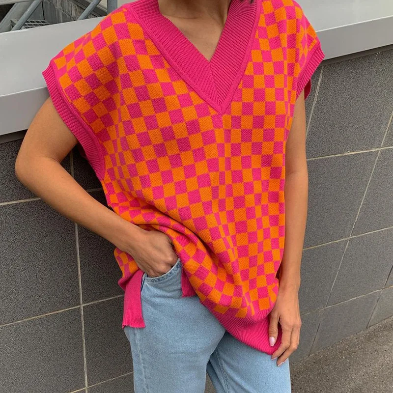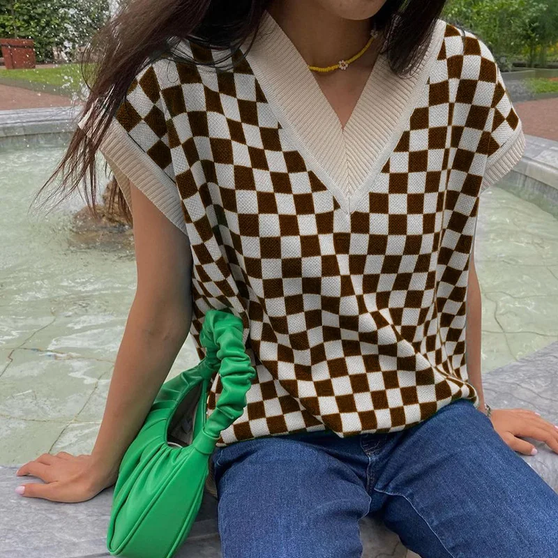 Тренд: | Винтажный клетчатый Свободный Повседневный жилет без рукавов | |