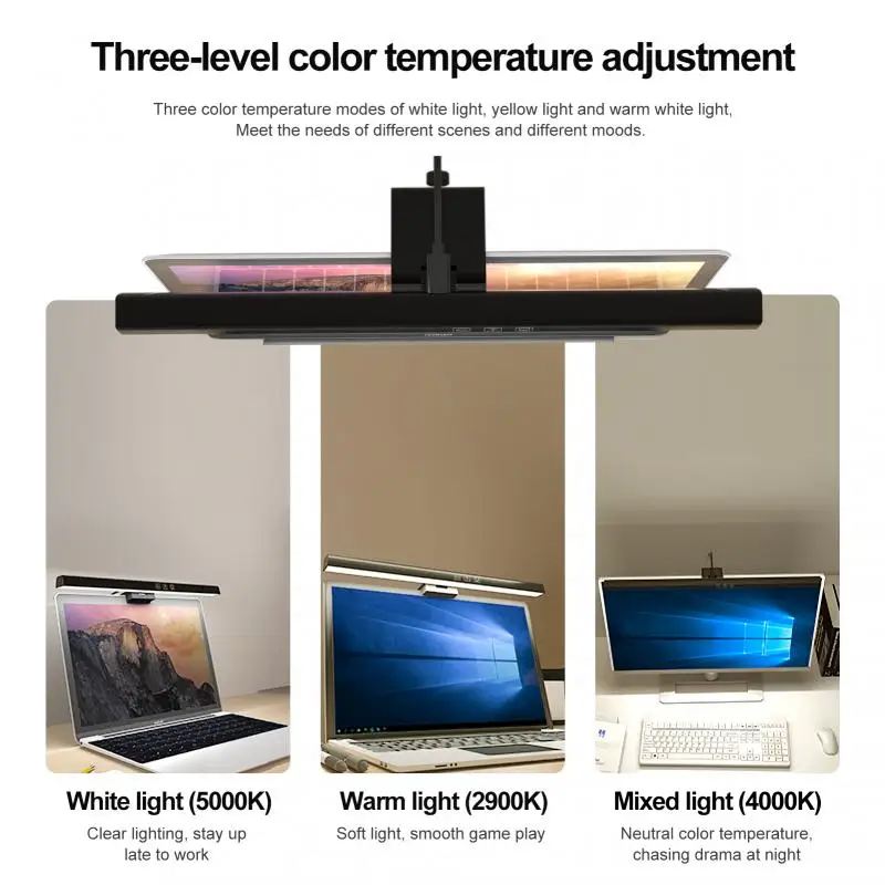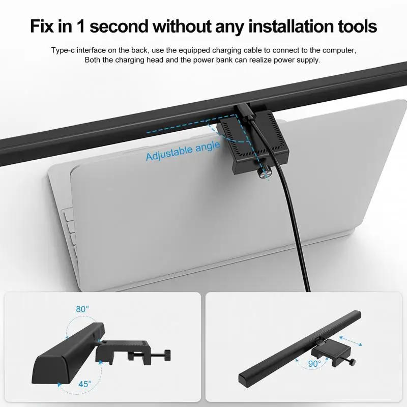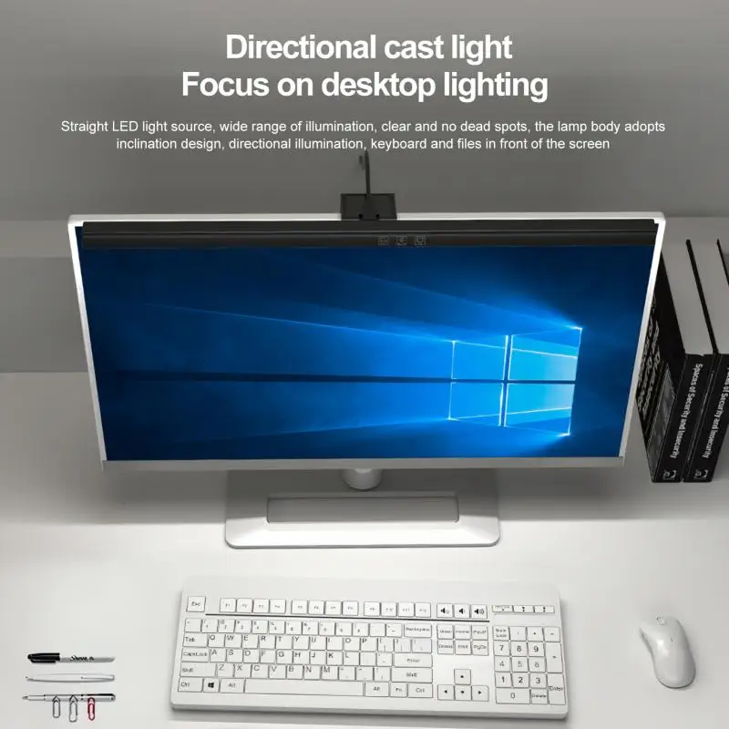 4. Экономьте пространство на рабочем столе. Компактный дизайн делает ваш светильник монитора компьютера устойчиво расположен на верхней части дисплея, экономя ценное место на столе, очень подходит для ограниченного рабочего места в офисе или дома.