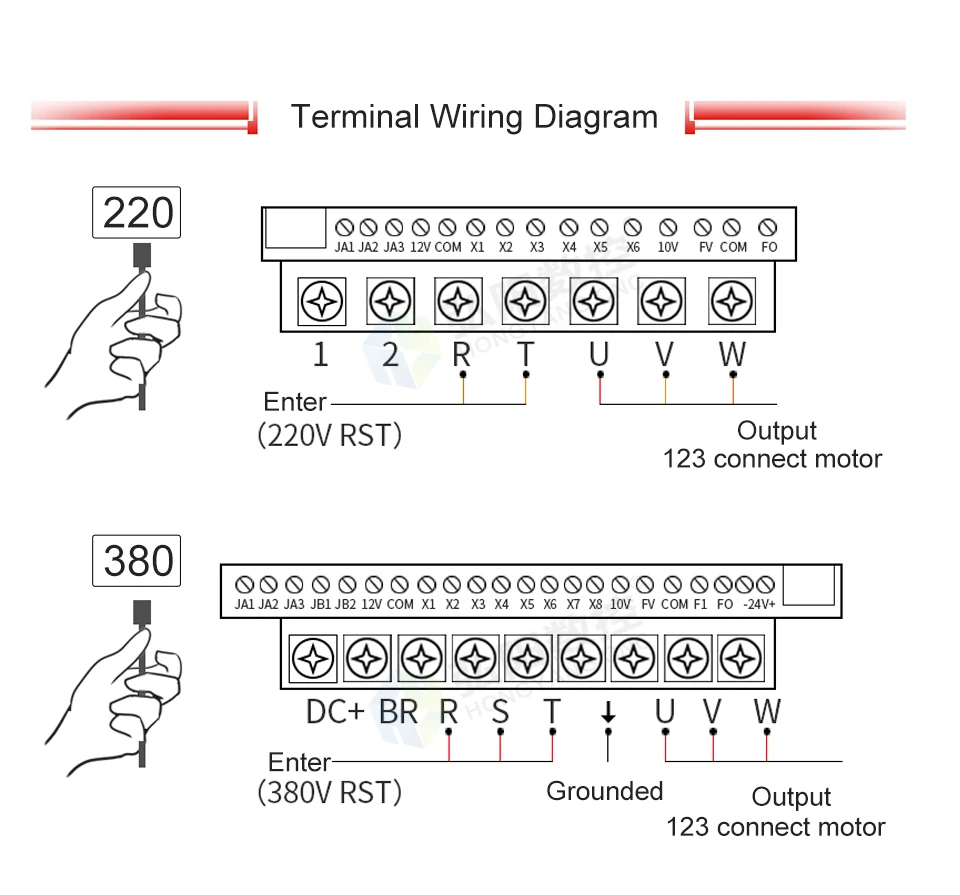 ● Чтобы подключить главный вал инвертора, трехфазный шнур питания инвертора должен быть приварен к штепсельной вилке 1 (U), 2 (V), 3 (W) pin, И Заземленный штифт 4. После включения питания, наблюдайте, всегда ли ось вращения шпинделя Показывает направление. Если это несовместимо, немедленно выключите его и замените два провода трехфазного источника питания, подключенного к инвертору и шпинделю.