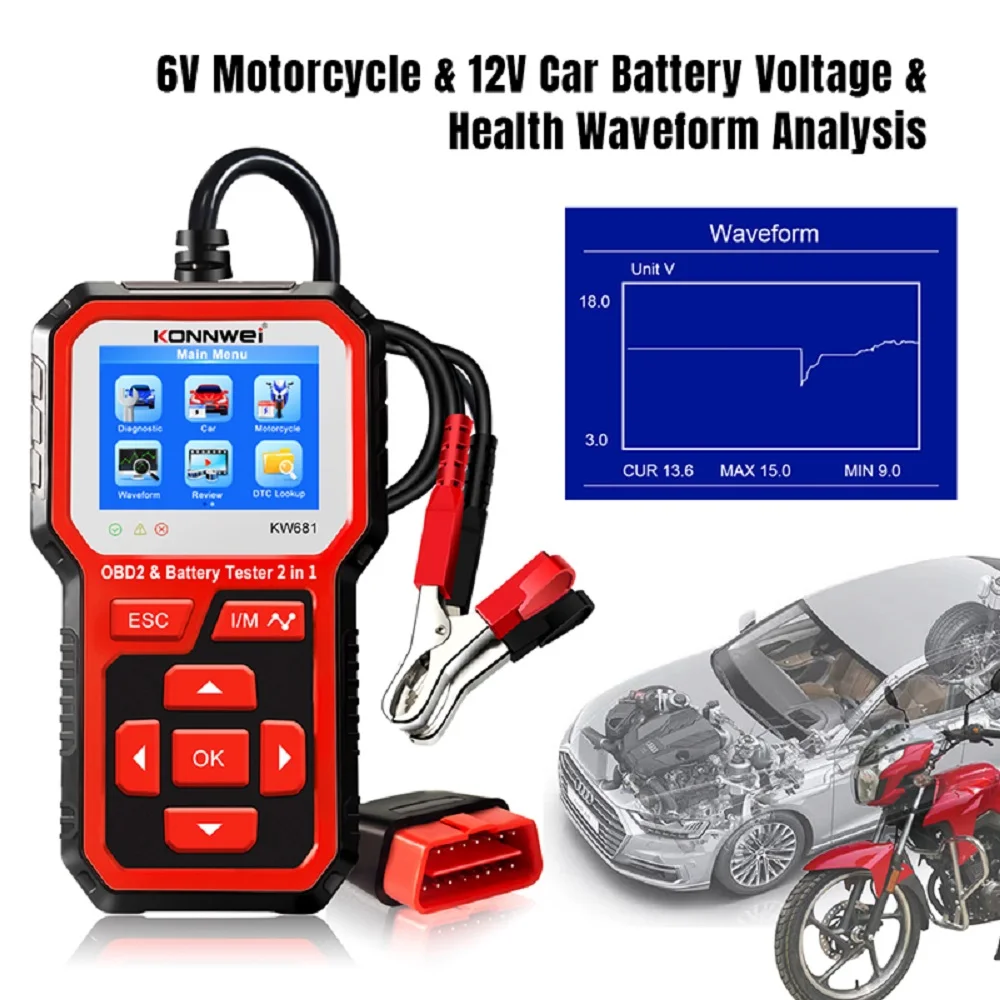 01. Тестер батареи и автомобильный диагностический инструмент obd II 2 в 1.