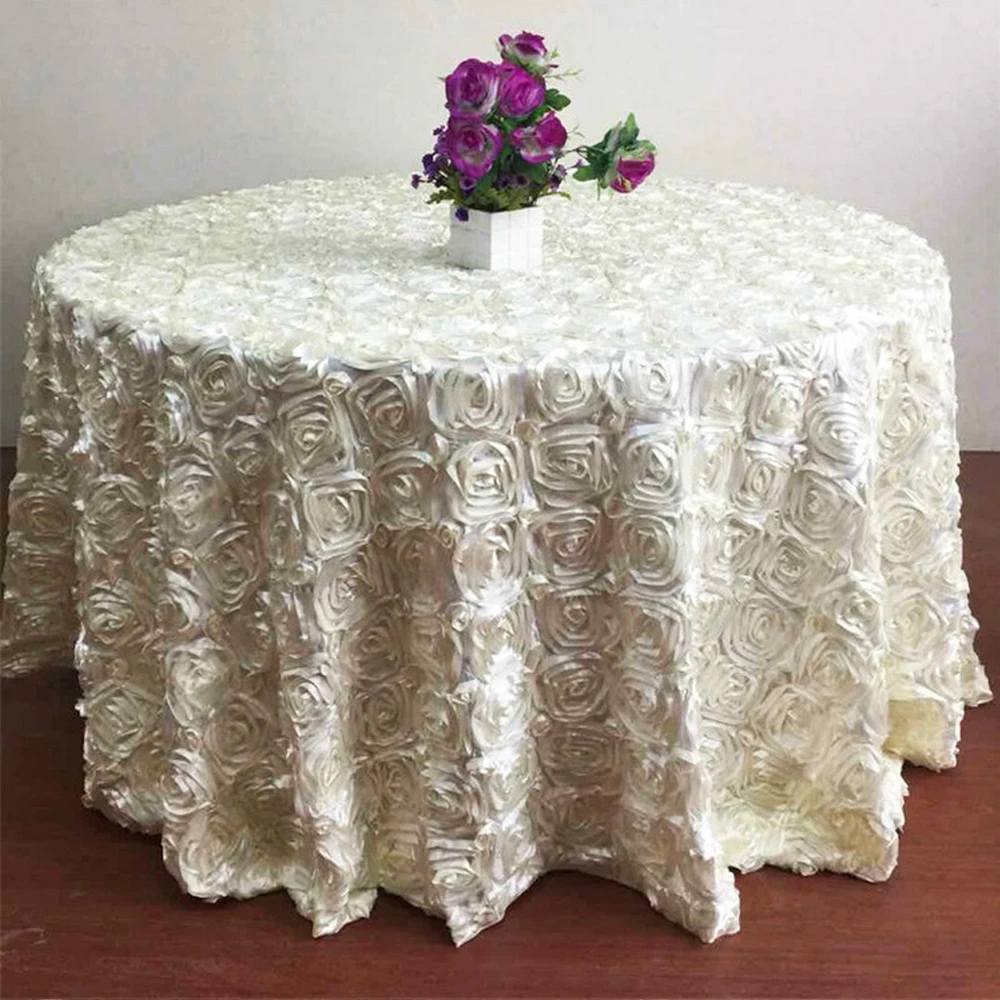 3D Rose Round Tablecloth Dining Table Cover 305cm Nordic Tablecloth Satin Table Cloth Round For Wedding Decoartion Christmas