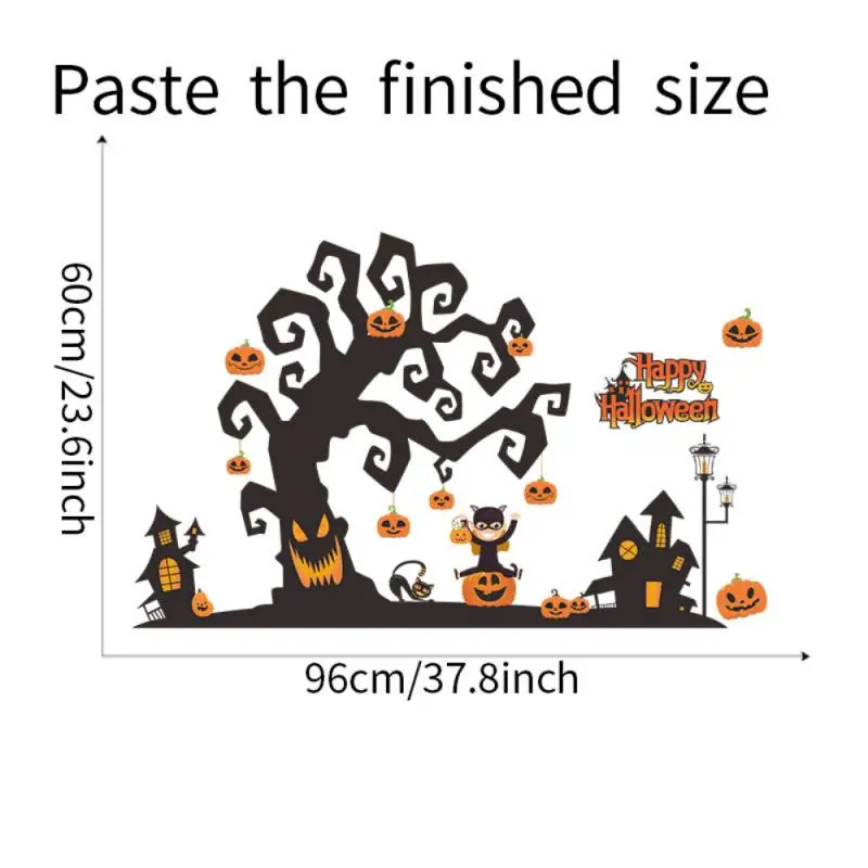 1. Наклейка с тыквой на Хэллоуин-содержит три размера: большие, средние и маленькие, что упрощает оформление.