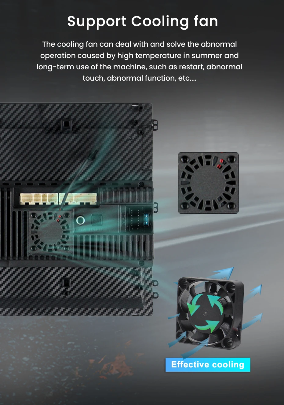 Вентилятор охлаждения может справиться и решить ненормальную работу, вызванную высокой температурой летом и долгосрочным использованием машины, например, перезапуск, аномальное касание, ненормальная функция, и...