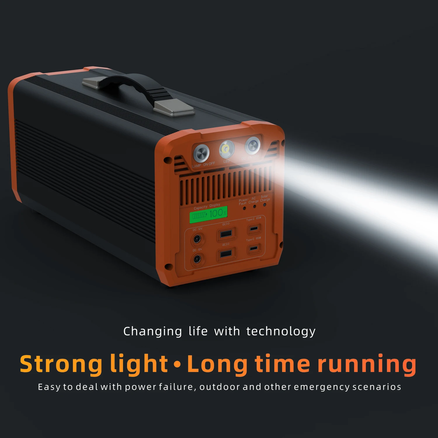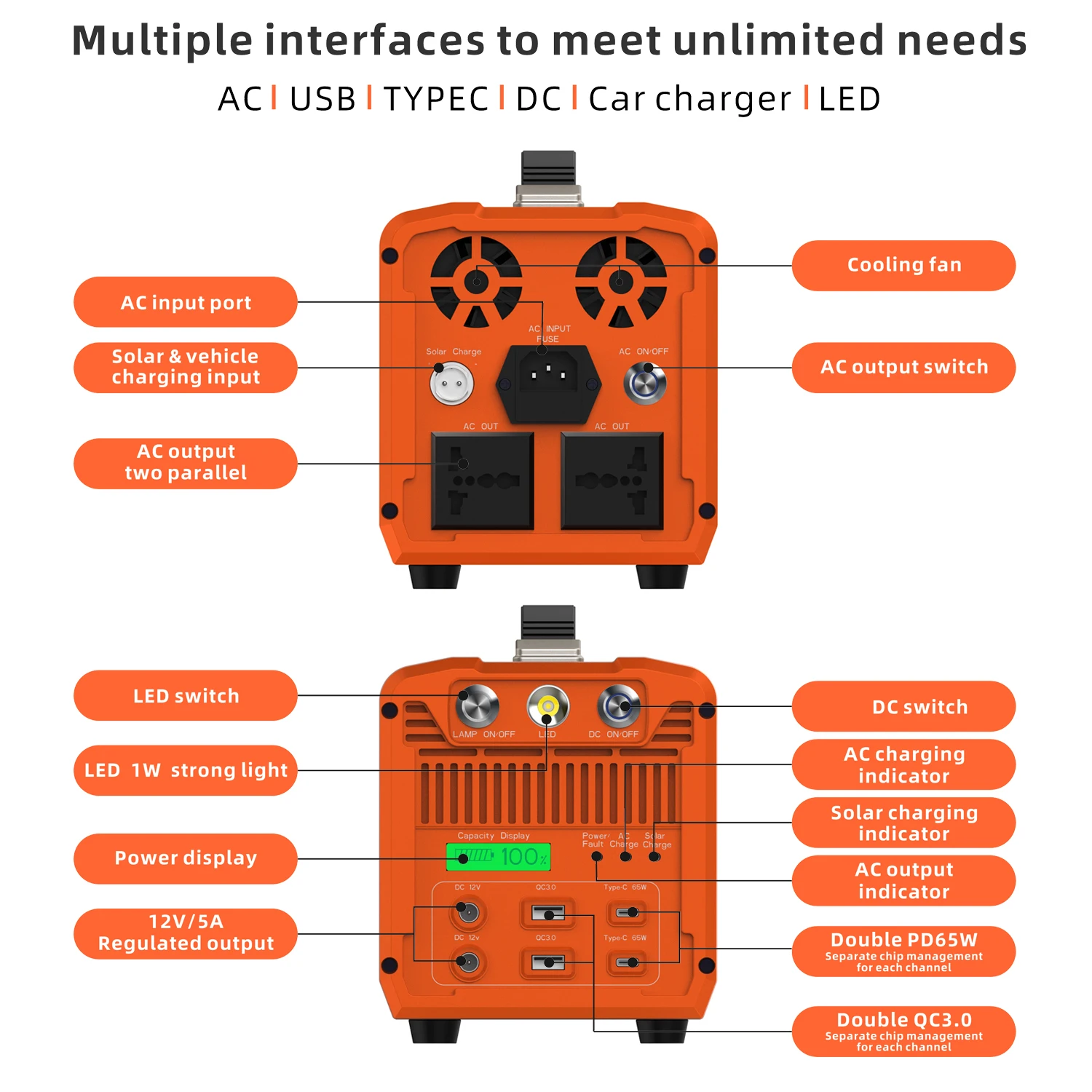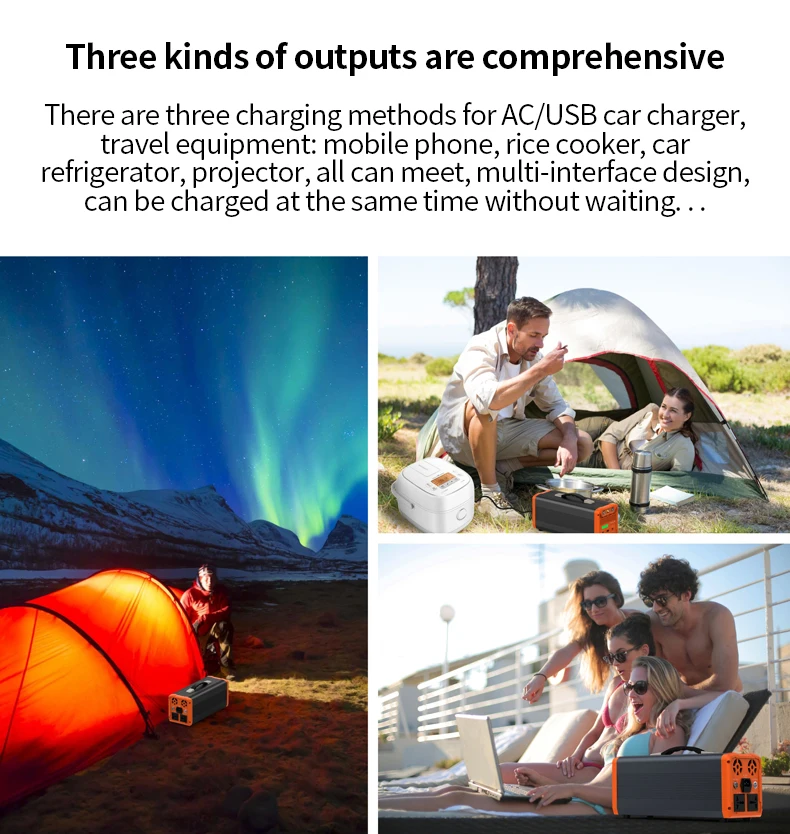 7. Используя выход переменного тока в то же время, вы также можете использовать DC 12 В, 5 в USB,Type-C, светодиодный светильник.