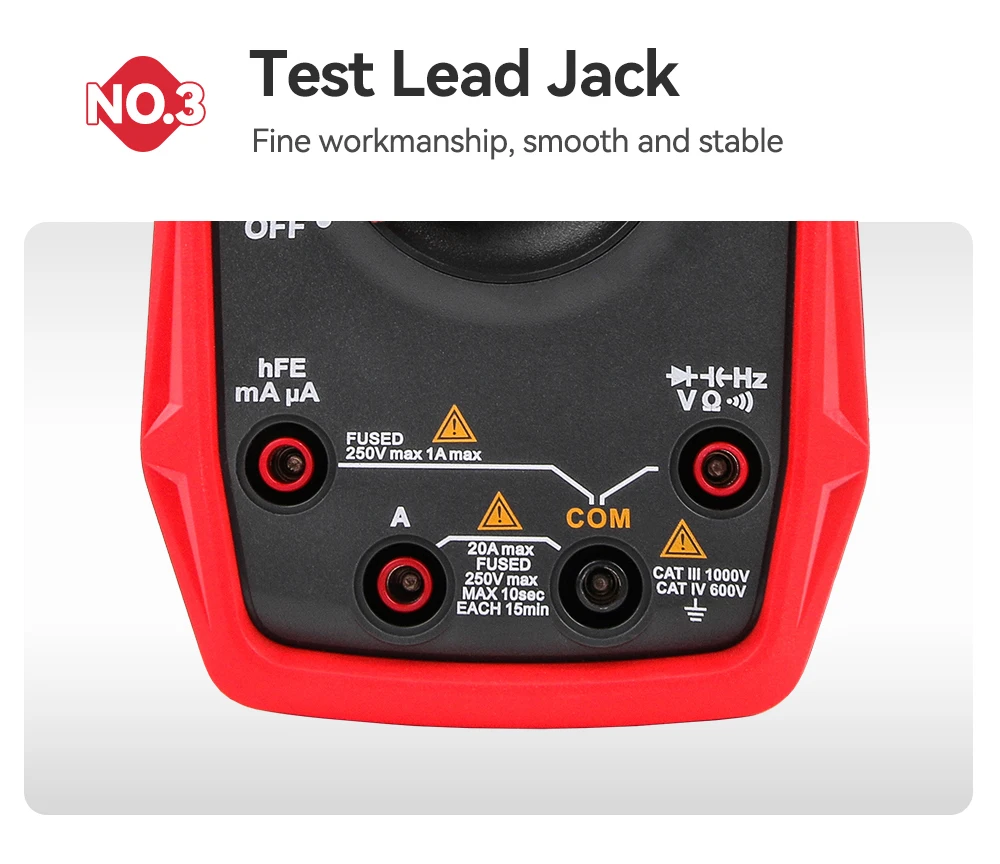Безопасность: CAT III 1000V / CAT IV 600V. Оснащен звуковым и видимым сигналом, который обеспечивает предупреждение, особенно при измерении высокого напряжения/тока. Прорезиненное покрытие. Эргономичный захват. Ультра безопасная и долговечная. Обнаружение NCV. Входная защита.