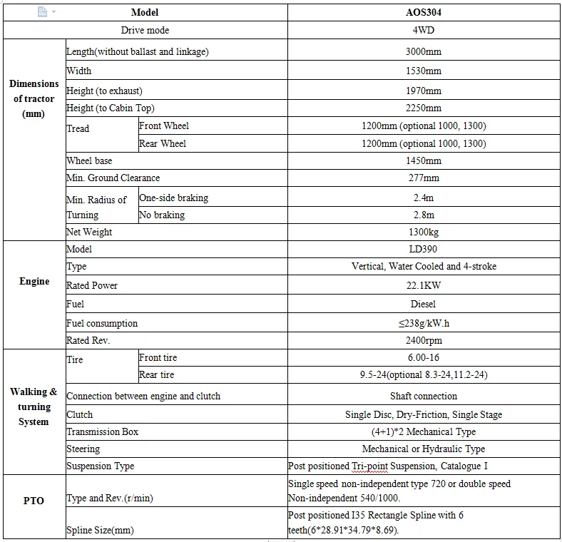 4WD 30hp мини сельскохозяйственный трактор Спецификация: