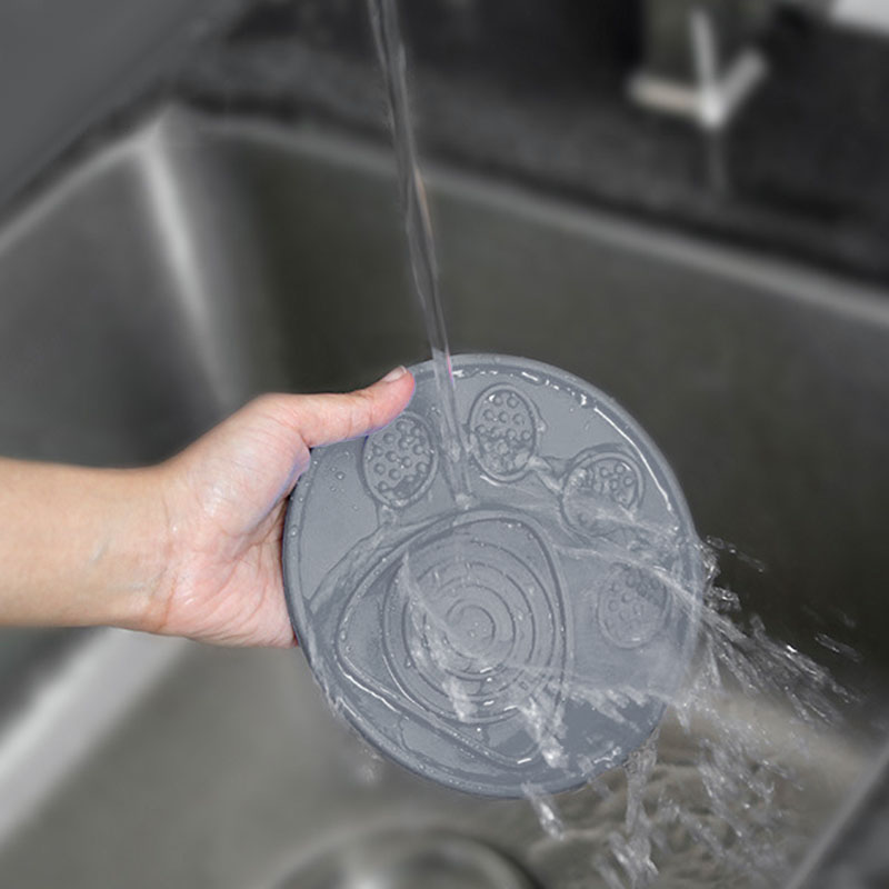 В посудомоечной машине или горячей мыльной воде можно легко очистить остатки пищи от липкого коврика для собак.