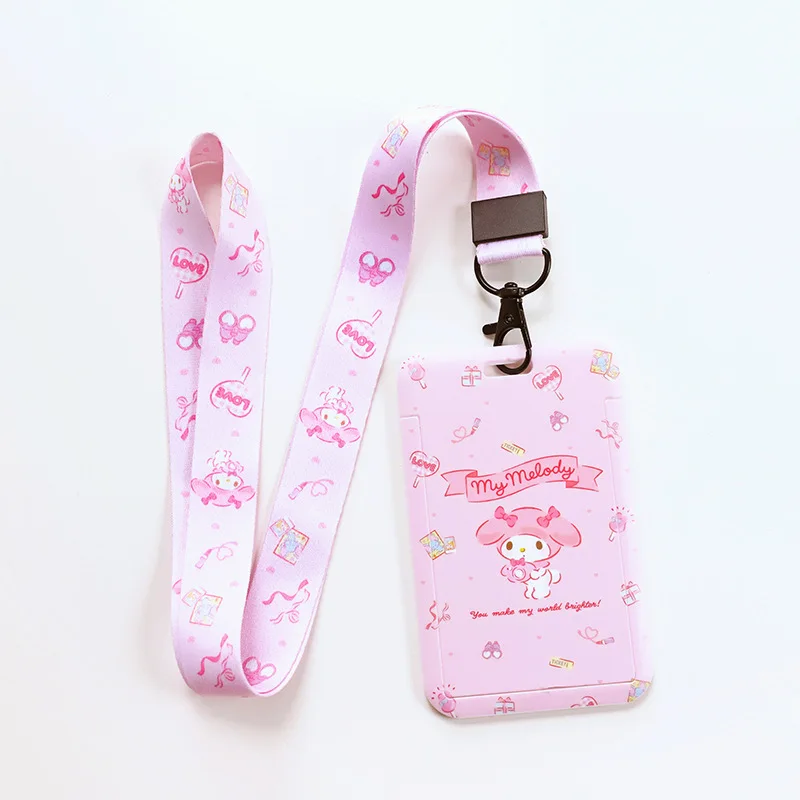Kawaii Kuromi Hello Kt Melody Cinnamorol Onpompurin Kitty Girls Lanyard Id Card Boys Neck Strap Keychain Case Holder Charm Toys