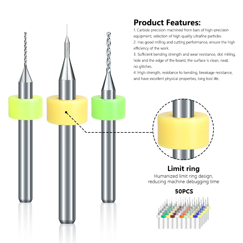 XCAN PCB сверло 50 шт. 0,3-1,2 мм твердосплавное сверло для сверления печатной платы 1/8 ''хвостовик микро пистолет дрель