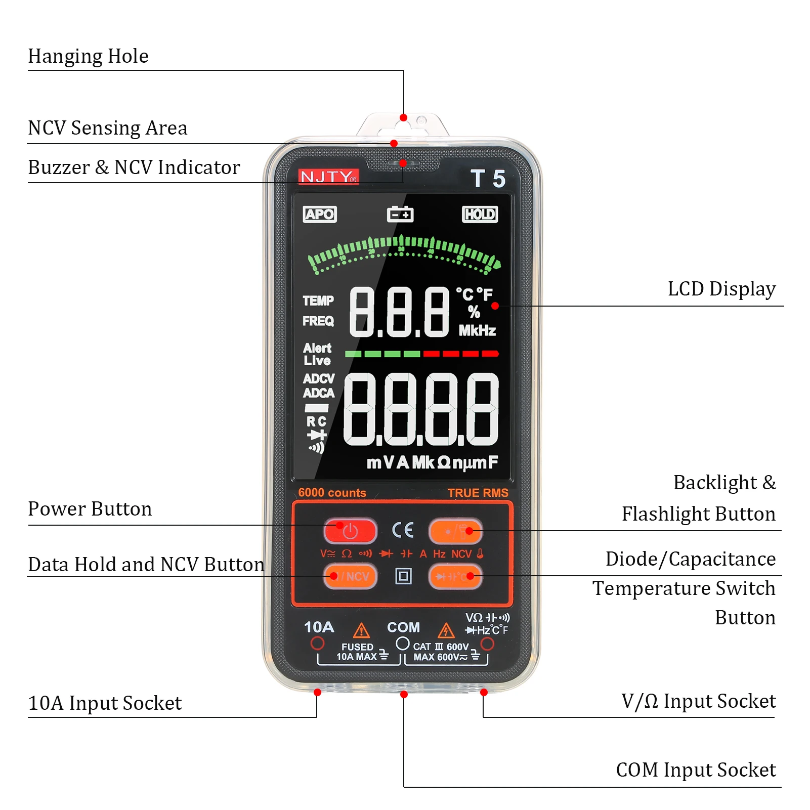 Easy-to-read LCD Display: 3.8-inch super large high definition LCD screen with maximum 6000 counts readout and backlight that makes readings more clear and accurate.