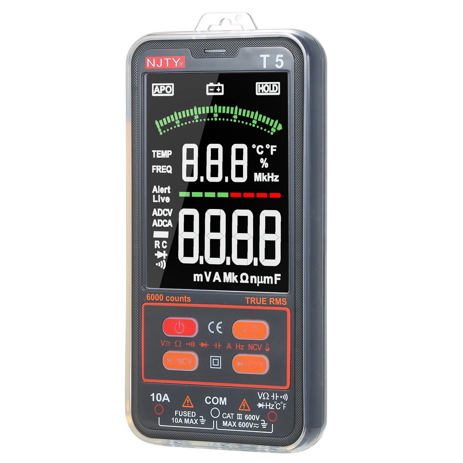 Compact Portable Size with Protect Sleeve: measured size in 6*6*1 inch, the mini-size multimeter is as small as your mobile phone that making it the perfect size for carrying around, with a transparent case to protect the device from scratching and dropping.