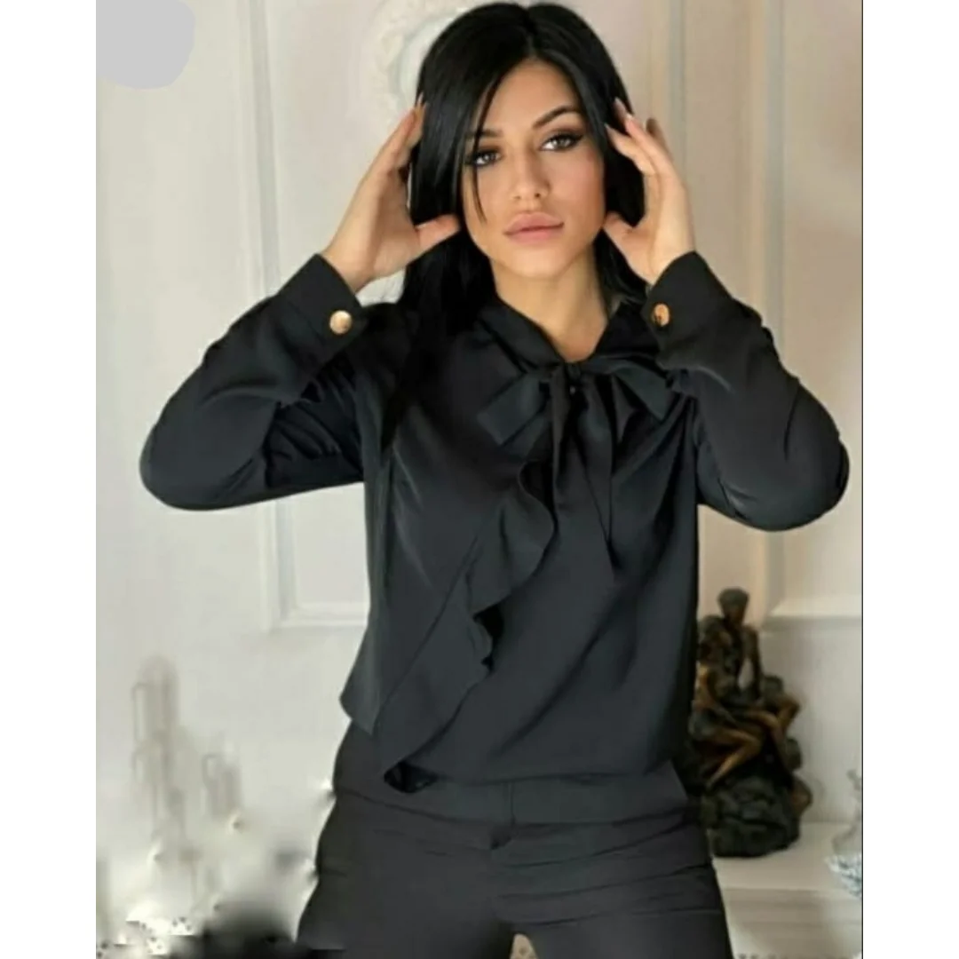Женская прозрачная блузка белая с длинными рукавами-фонариками и жемчужными
