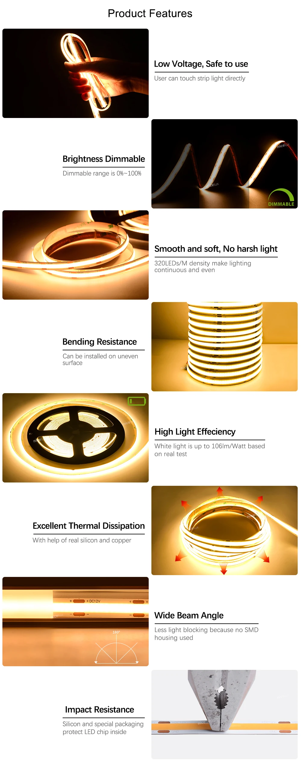 Новый COB светодиодный Регулируемая полоска светильник 8 мм 320 светодиодный s высокой плотности DC 12V 24V гибкий ленточный светильник s Лента линейная лента 3000K 4000K 6000K