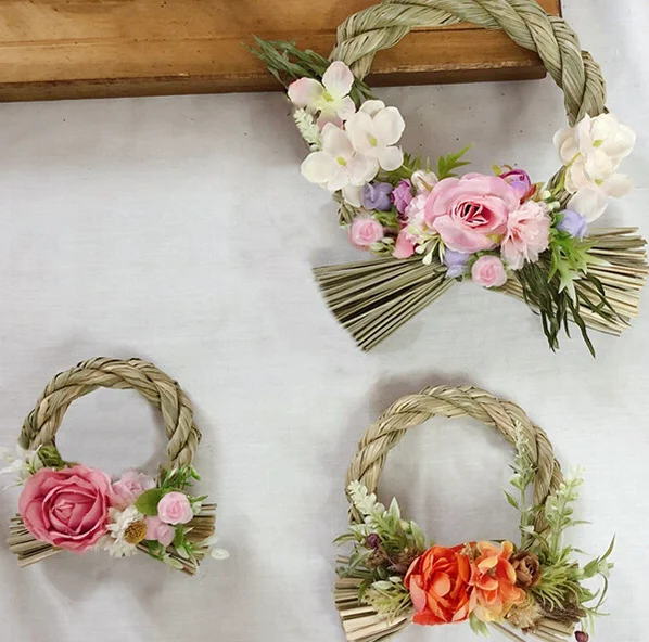 Оптовая продажа, японское кольцо с цветами рафия, украшение на день, место проведения, венок, дверной молоток, подвеска, День благодарения, домашние рождественские растения