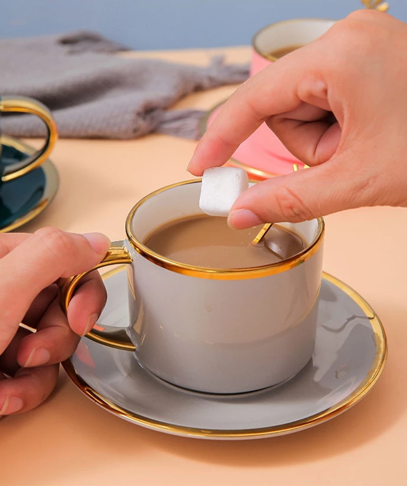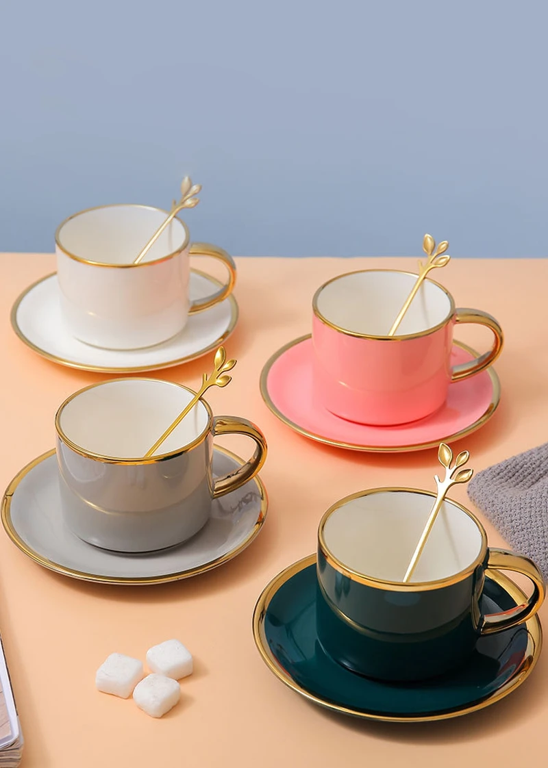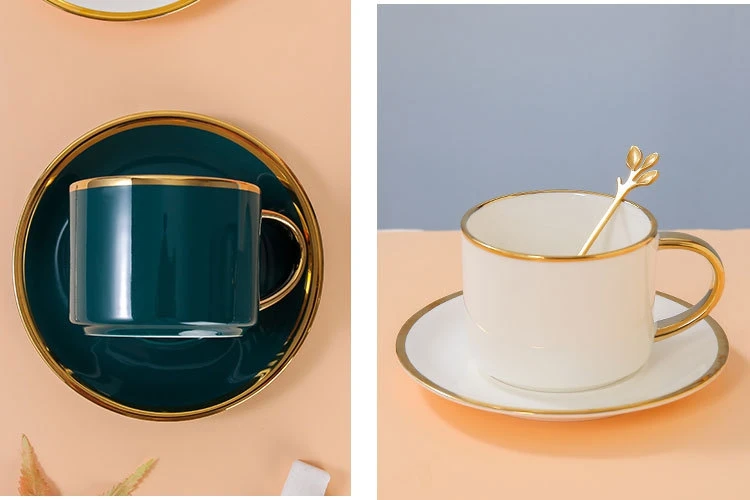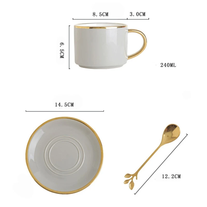 Скандинавская кофейная чашка с блюдцем в золотой оправе креативная фарфоровая