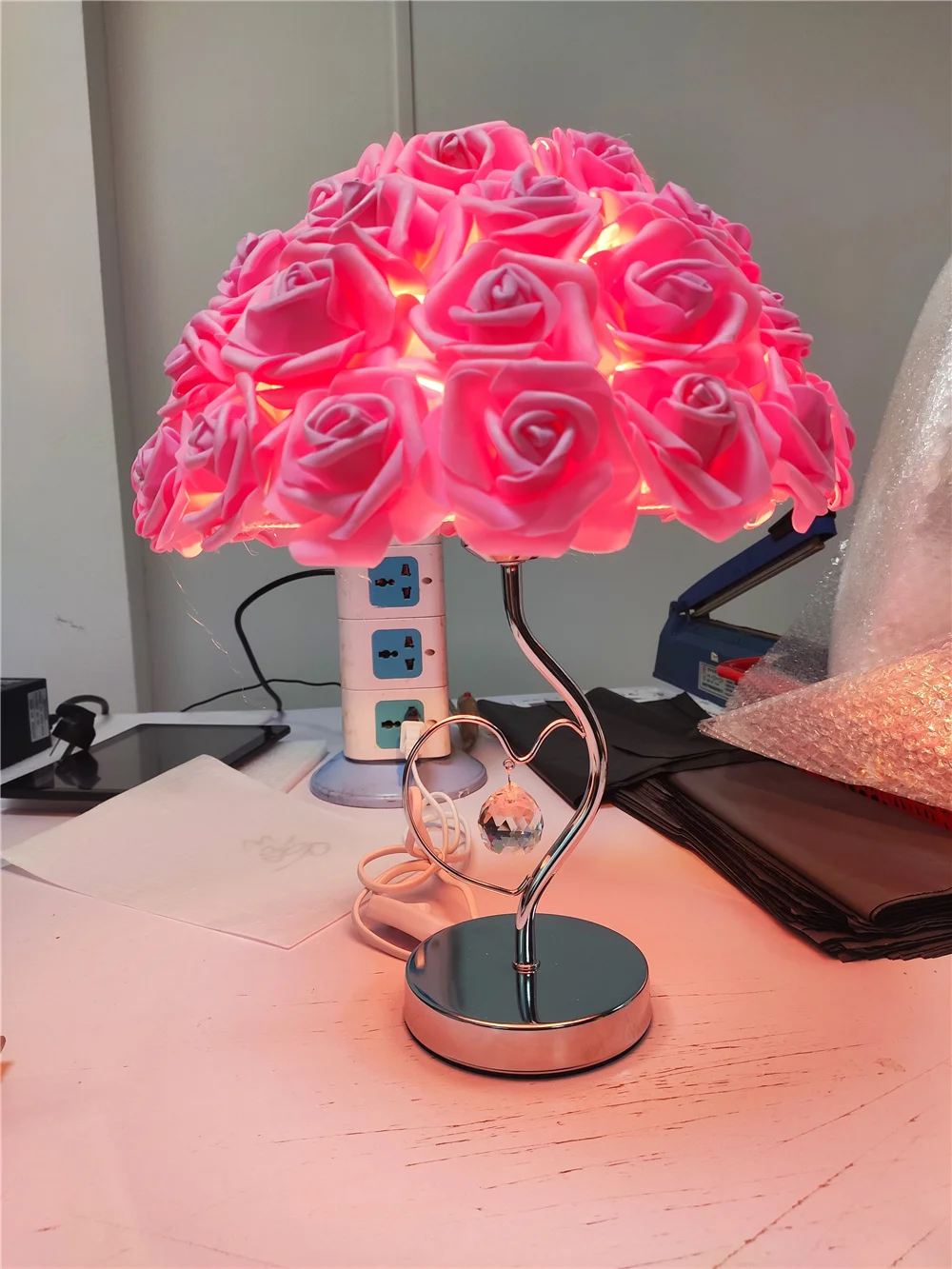 Новый розовый с украшениями в виде кристаллов и цветов светодиодный Ночной светильник в европейском стиле Стиль Свадебная вечеринка спальня прикроватный ночник украшение праздника подарка для девочек