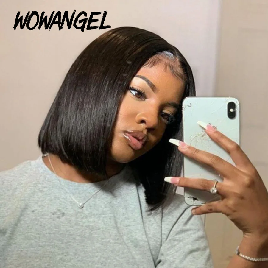 Прямые парики из натуральных волос на шнурках, парик из бразильских волос Remy, Короткие парики из натуральных волос, парики с фронтальным кружевом