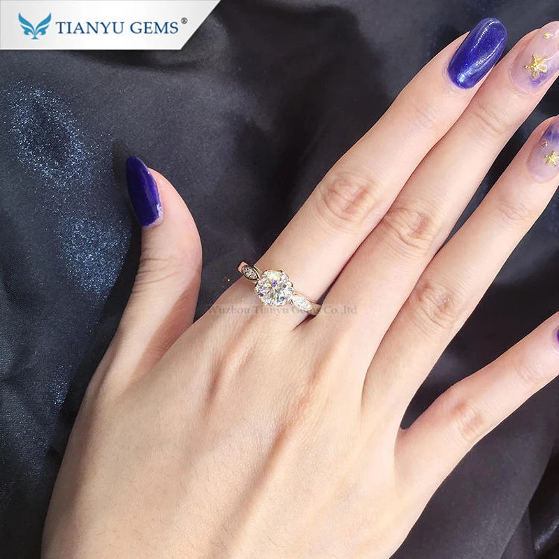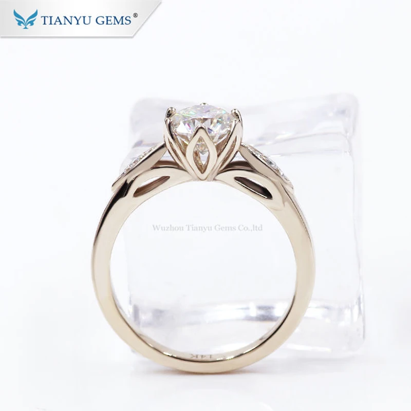 Tianyu драгоценные камни 7,5 мм круглый H & A кроя DEF бесцветный Муассанит 14K твердого желтого золота кольца Круглые бриллианты драгоценные камни Для женщин, хорошее ювелирное изделие