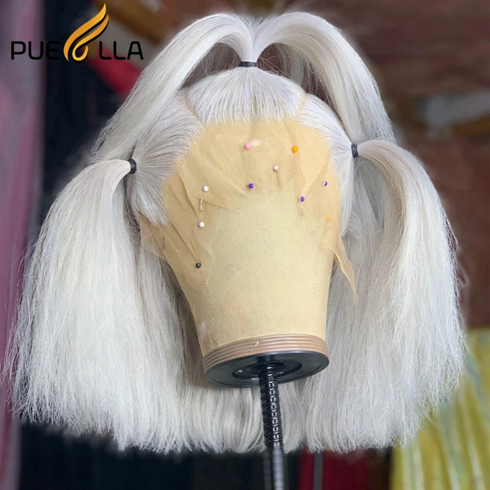 White Blonde Lace Front Wig Human Hair Platinum Blonde Wig
