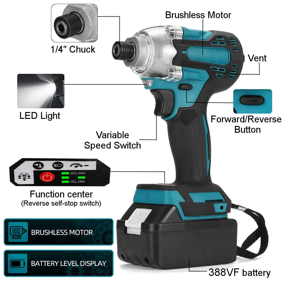 18 в 800N.m. Литий-ионный 1/4 ''бесщеточный беспроводной отвертка Особенности: High 800N.M высокий крутящий момент, плавный Переключатель изменения скорости. Ful Мощная Электрическая отвертка, супер мощность. Shaft вал из вольфрамовой стали, высокая твердость и износостойкость. Lithium литиевая батарея большой емкости, длительный срок службы батареи, энергосбережение ▲Подходит для строительных площадок, технического обслуживания, деревообработки и т. Д. ▲Бесщеточный двигатель не генерирует искры, когда он работает, и двигатель не изнашивается.