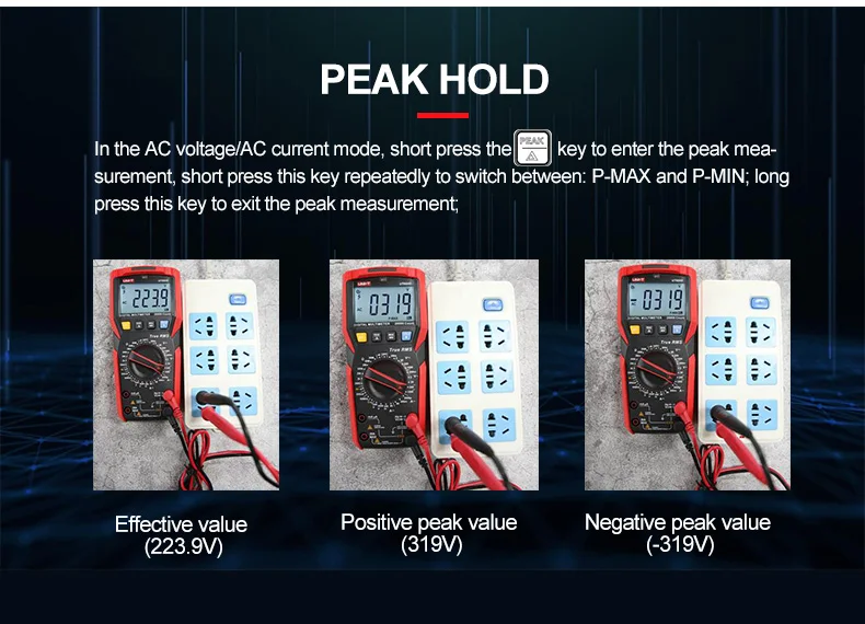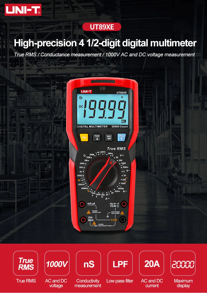 UT89XE-это мультиметр ручной передачи с 20000 цифрами, действительно эффективным значением, высоким разрешением, точным измерением и полными функциями. В дополнение к обычным функциям, добавляется Функция измерения проводимости (диапазон 0.1-200nS, преобразованное сопротивление 5Ω-10GΩ), который расширяет диапазон измерения сопротивления и заполняет дефект, который не может быть измерен большим сопротивлением; Продукт в соответствии с дизайном уровня безопасности CAT Il 1000V/CAT III 600V, С измерением перенапряжения, Сверхтоковые alam подсказки, Все шестерни оснащены высоковольтными устройствами защиты от неправильного обнаружения.