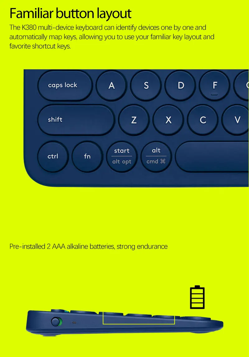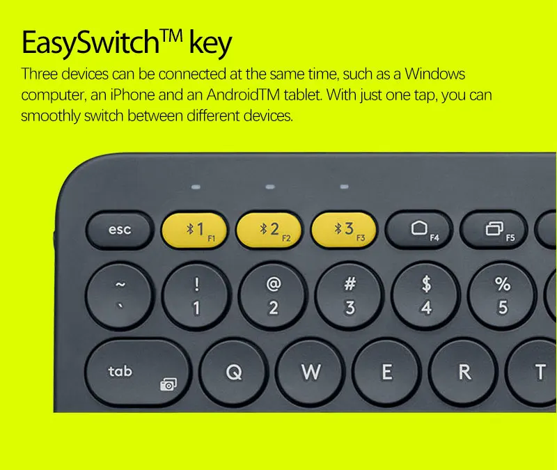 Многофункциональная клавиатура K380 может идентифицировать устройства по одному и автоматически отображать ключи, что позволяет использовать привычную раскладку клавиш и любимые сочетания клавиш.