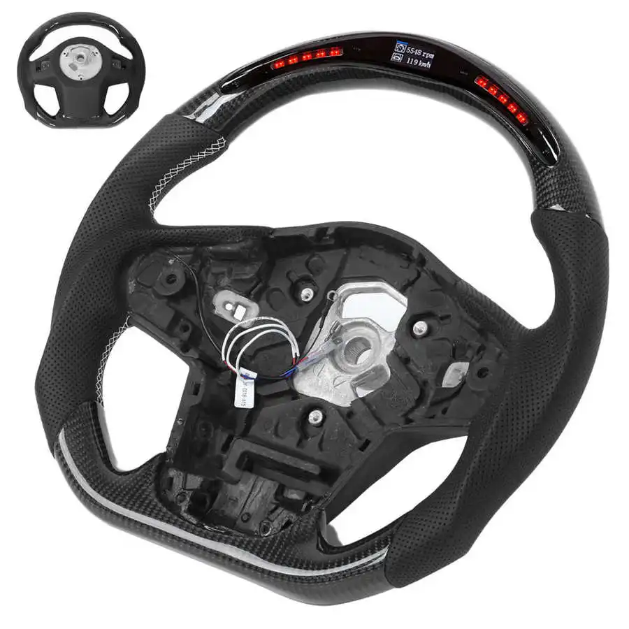 Легко установить, просто подключите модуль к беспроводной штепсельной вилке OBD2 без проводки и замените отделочную панель, жгут проводов и механизм переключения от имеющегося рулевого колеса к этому новому рулевому колесу.