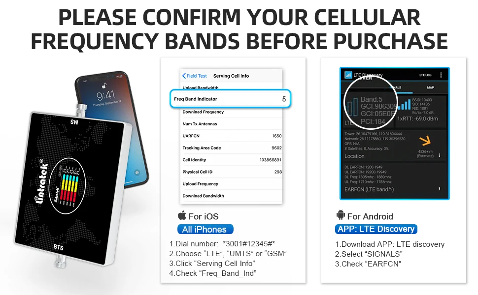 ------Матч частота:Пожалуйста, убедитесь, что частота вашего телефона совпадает с усилителем. Если вы не знаете частоту, пожалуйста, проверьте частоту и отправьте нам результат.