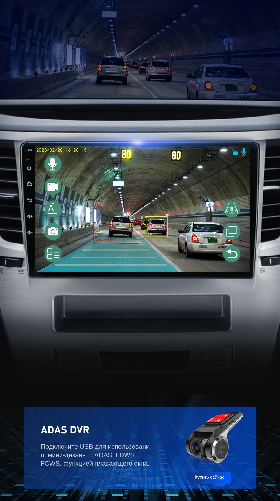 Поддерживает подключение к видеорегистраторУ ADAS. ADAS DVR имеет несколько встроенных ассистивных технологий вождения, вставляя высококачественную карту памяти TF для записи каждого момента вашего вождения.