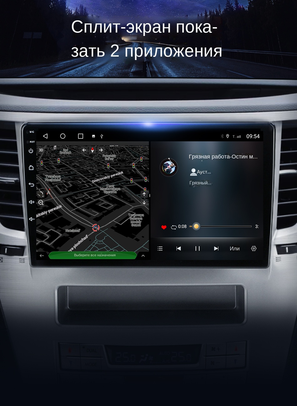 Поддержка раздельного экрана любых 2 приложений, сочетающихся по желанию.