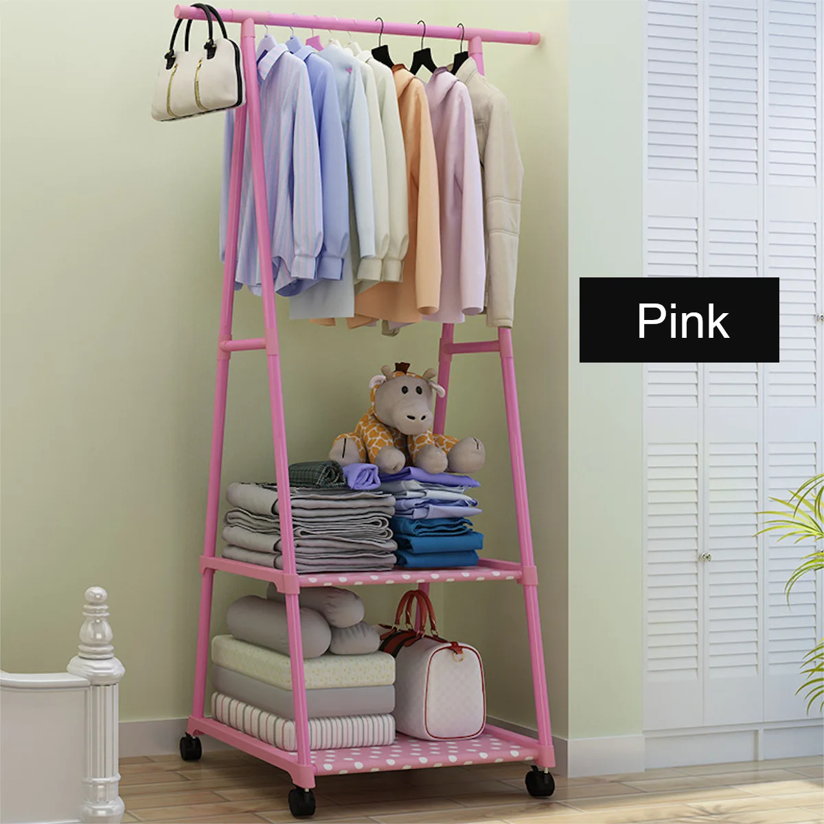 ● It is equipped with two layers cloth shelf for your convenient storage