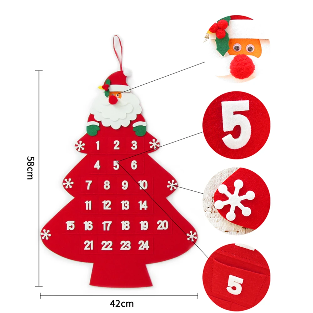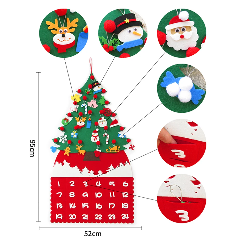 * 1. Это Рождественское украшение с календарем изготовлено из высококачественной войлочной ткани без запаха, долговечной, многоразовой и нетоксичной, безопасно для ваших детей. Ваши дети должны чувствовать себя очень довольны этим креативным съемным подвесным орнаментом