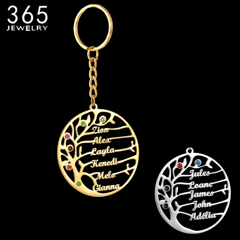 Название:Пользовательское имя кольцо для ключей круглая спасательная елка камень по рождению персонализированные буквы из нержавеющей стали брелок для семьи ювелирные изделия подарок на день рождения