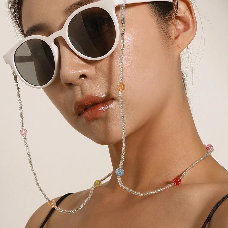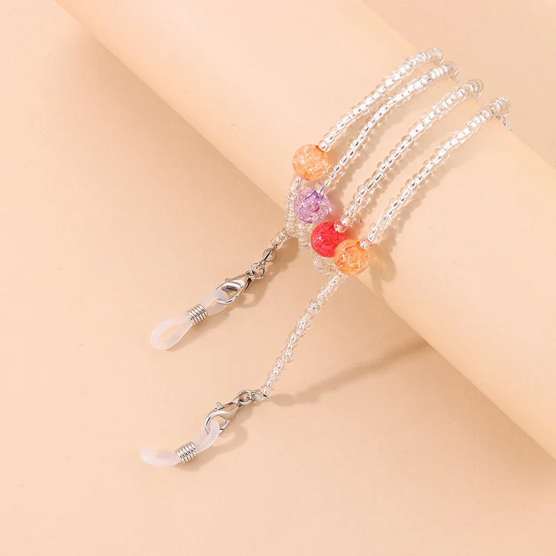 Color transparent bead glasses,fashionable and simple style,can be matched with various types of glasses.It can be not only a glasses chain,