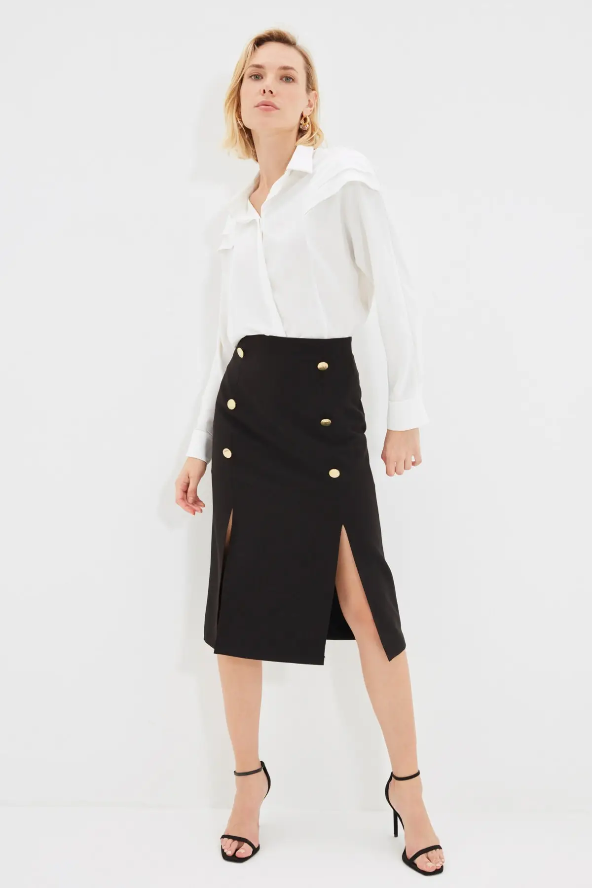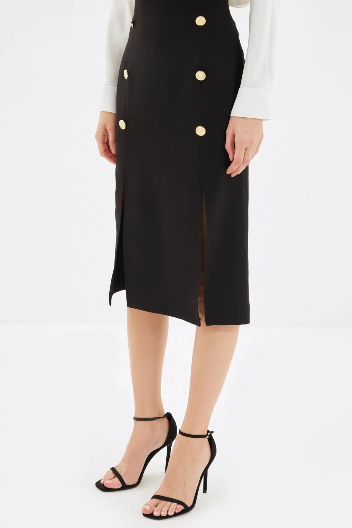 Юбка-микро с завышенной талией черная трапециевидная разрезом Y2K |
