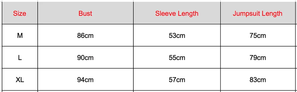 Таблица размеров