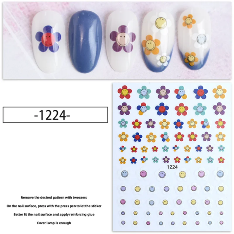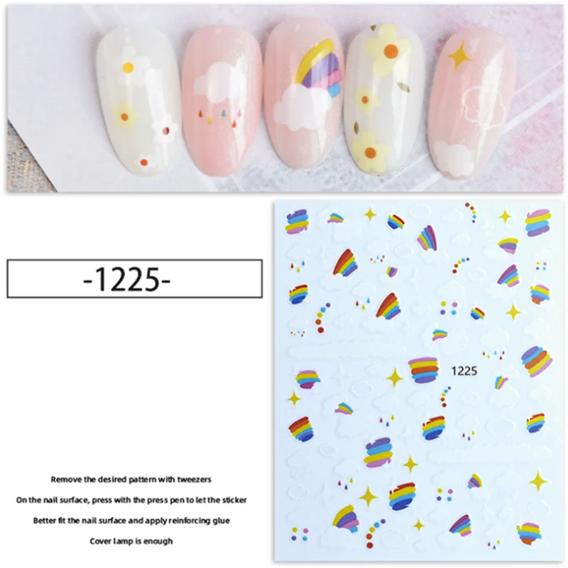 Тонкая наклейка для ногтей и наклейка Улыбка/медведь/цветок/Радуга/кролик DIY слайдер для маникюра клей для накладных ногтей украшения ногтей