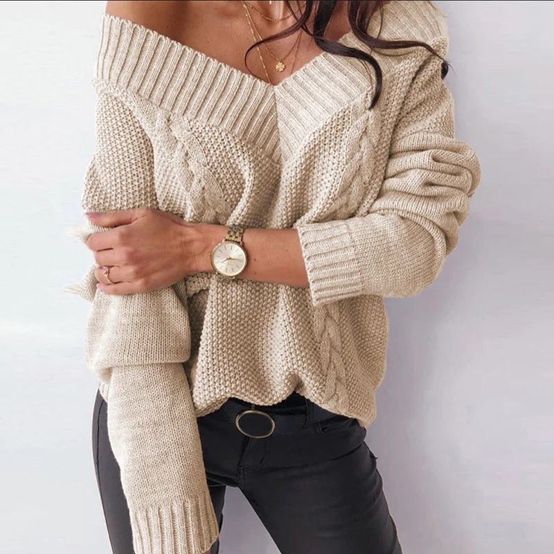 Pull tricoté à manches longues pour femme, col en V, Style ample, décontracté, à la mode, nouveau, hiver, 2021