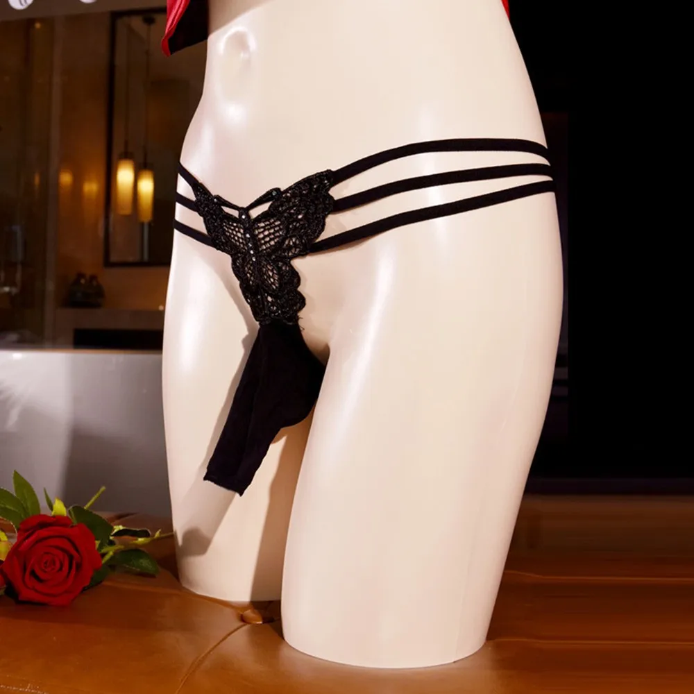 Мужские сексуальные трусики Sissy, кружевные стринги, Трусы-стринги, нижнее белье, трусы с рукавами-бабочками, бандажные стринги с перекрестными ремешками