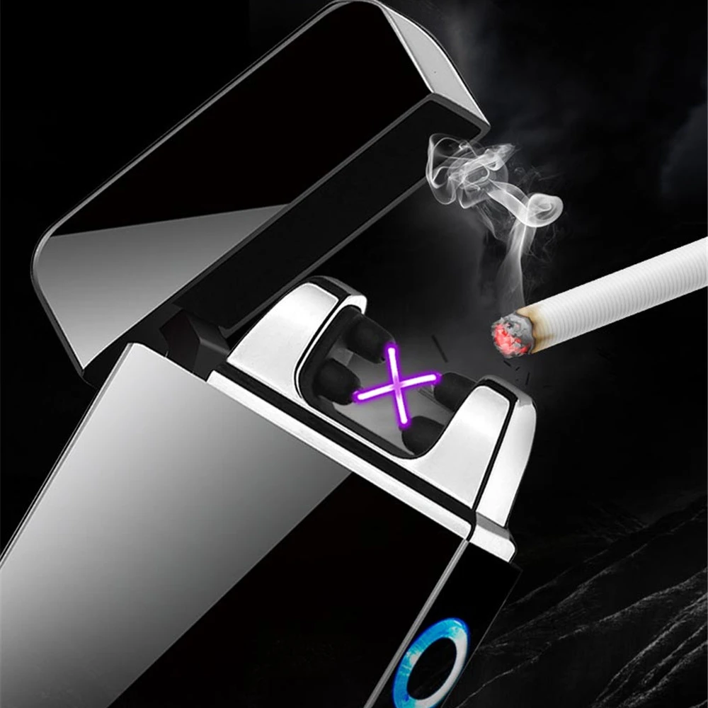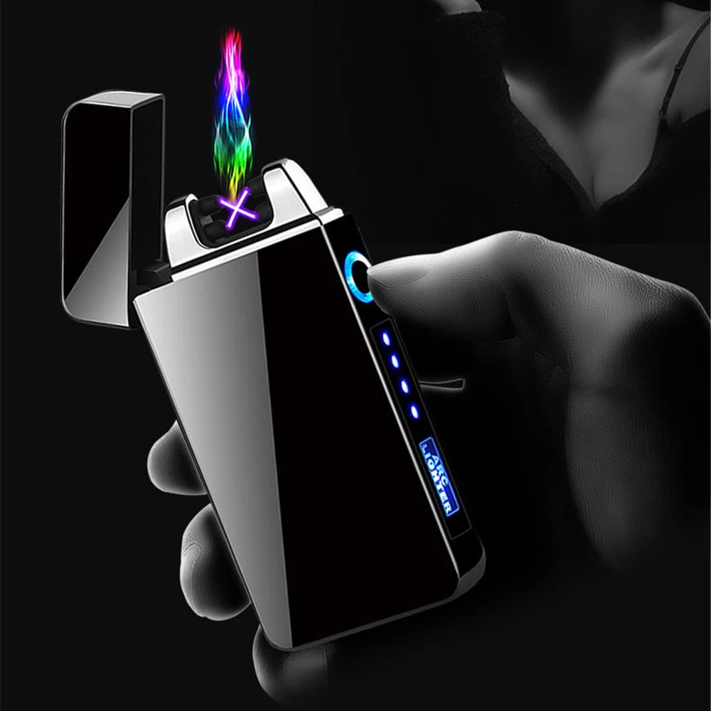 Портативные USB металлические зажигалки двойная дуговая плазменная Зажигалка уличные ветрозащитные зажигалки для сигарет с Светодиодный индикатор питания Инструмент для сигарет