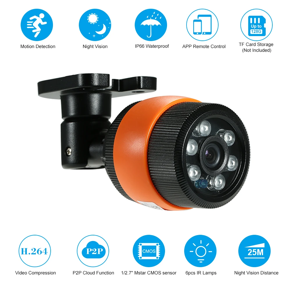HD 720P ip-камера Водонепроницаемая камера безопасности Поддержка облачного хранилища P2P телефон приложение 1/4 & Prime; CMOS 3,6 мм IR-CUT фильтр инфракрасного ночного видения