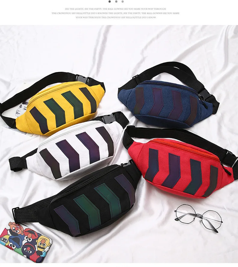 5 цветов поясная сумка: черный, синий, красный, желтый, белый поясная сумка имеет 1 карман на молнии Размеры: 34*12*7 см, ремень ожидания подходит для 120 см Макс Материал: холст