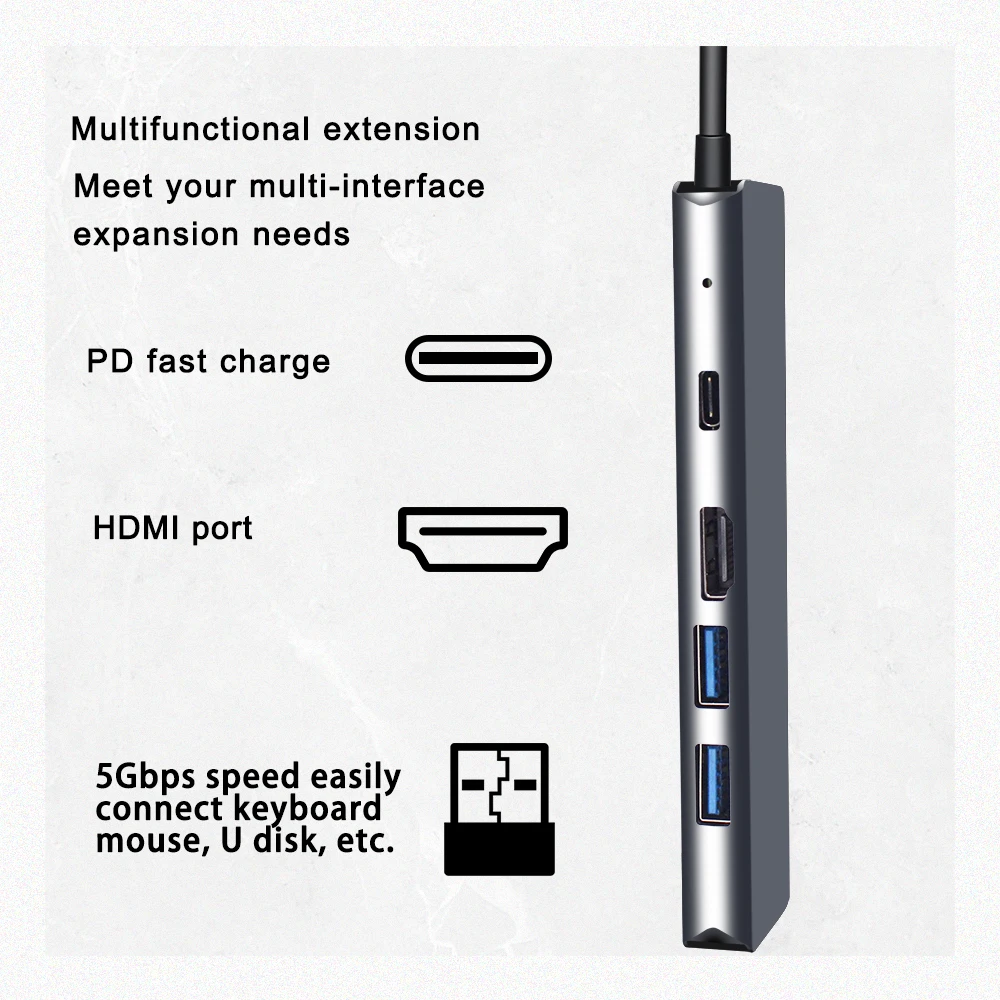 USB C Hub 5 In 1 Type C 3.1 To 4K HDMI -Compatible Adapter with RJ45 USB Dock For MacBook Air Pro PC Type C Laptops