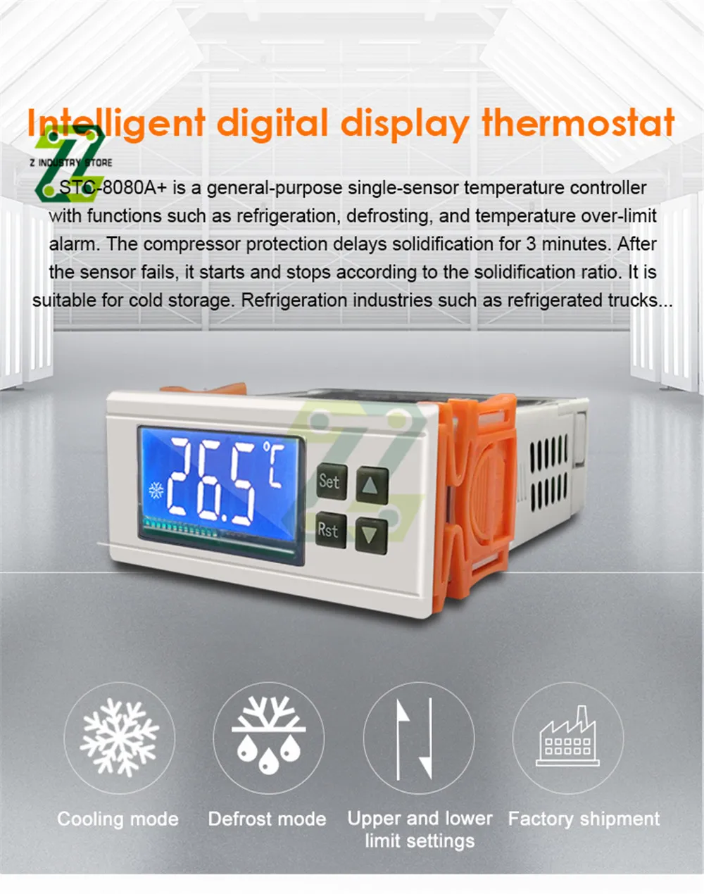 STC-8080A + является универсальным односенсорным температурным контроллером с такими функциями, как охлаждение, размораживание, перегрев температуры и т. д.